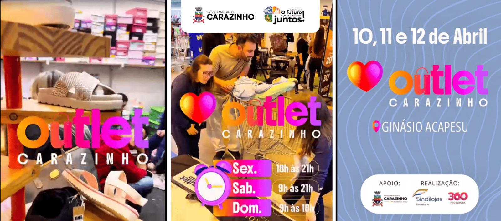 Desta sexta até o próximo domingo (10 a 12/04) o ginásio da Acapesu vai sediar o Carazinho Outlet, em sua primeira edição, numa realização do Sindilojas, operacionalizado pela 360 Produtora, com apoio da prefeitura municipal através da Secretaria de Desenvolvimento Econômico.
