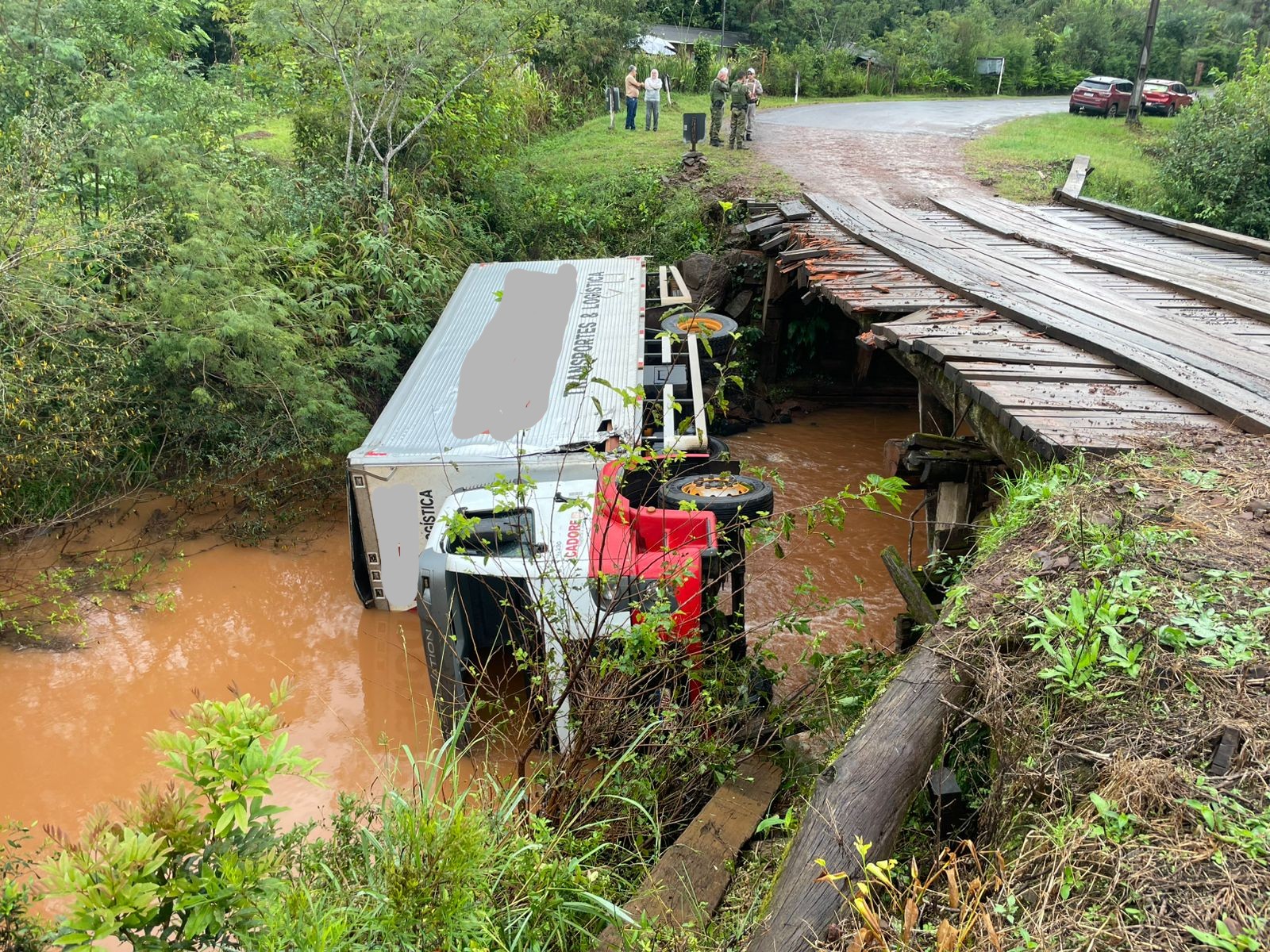 Caminhão cai da ponte do Rio Turvo em Coqueiros do Sul